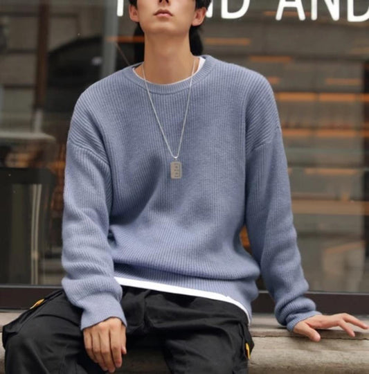 Mens KPOP Style Crew Neck Loose Fit Sweater