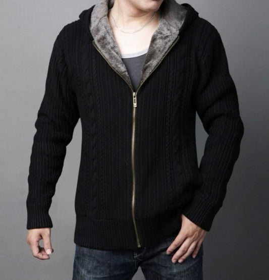 Mens Two Tone Layered Look Zipper Cardigan With Hood