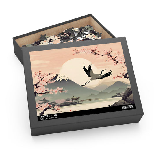 Vintage Japanese Art with Crane Jigsaw Puzzle 500-Piece