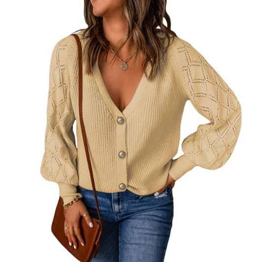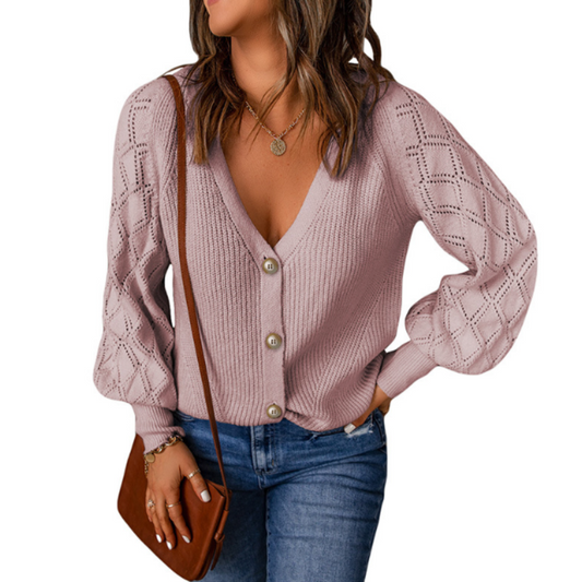 Womens Button Down Cardigan With Hollow Out Knit Hood