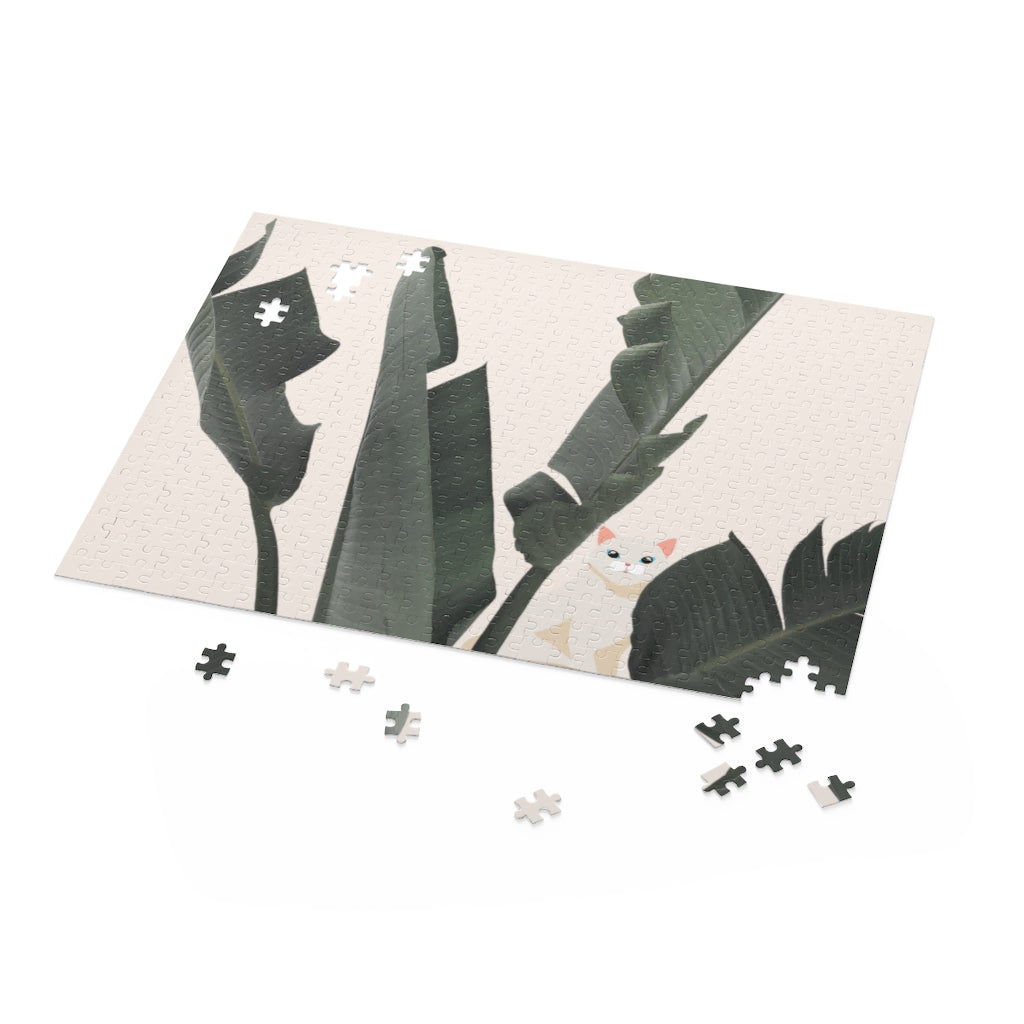 Cat Hiding Behind Tropical Plant Jigsaw Puzzle 500-Piece