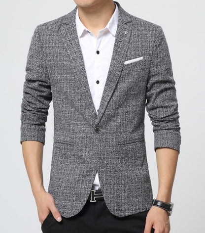 Mens Casual Slim Fit Houndstooth Blazer comes in Gray or Red