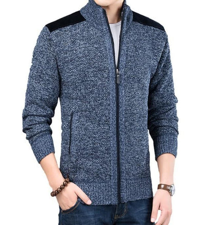 Mens Zipped Up Cardigan with Elbow Patch in Blue