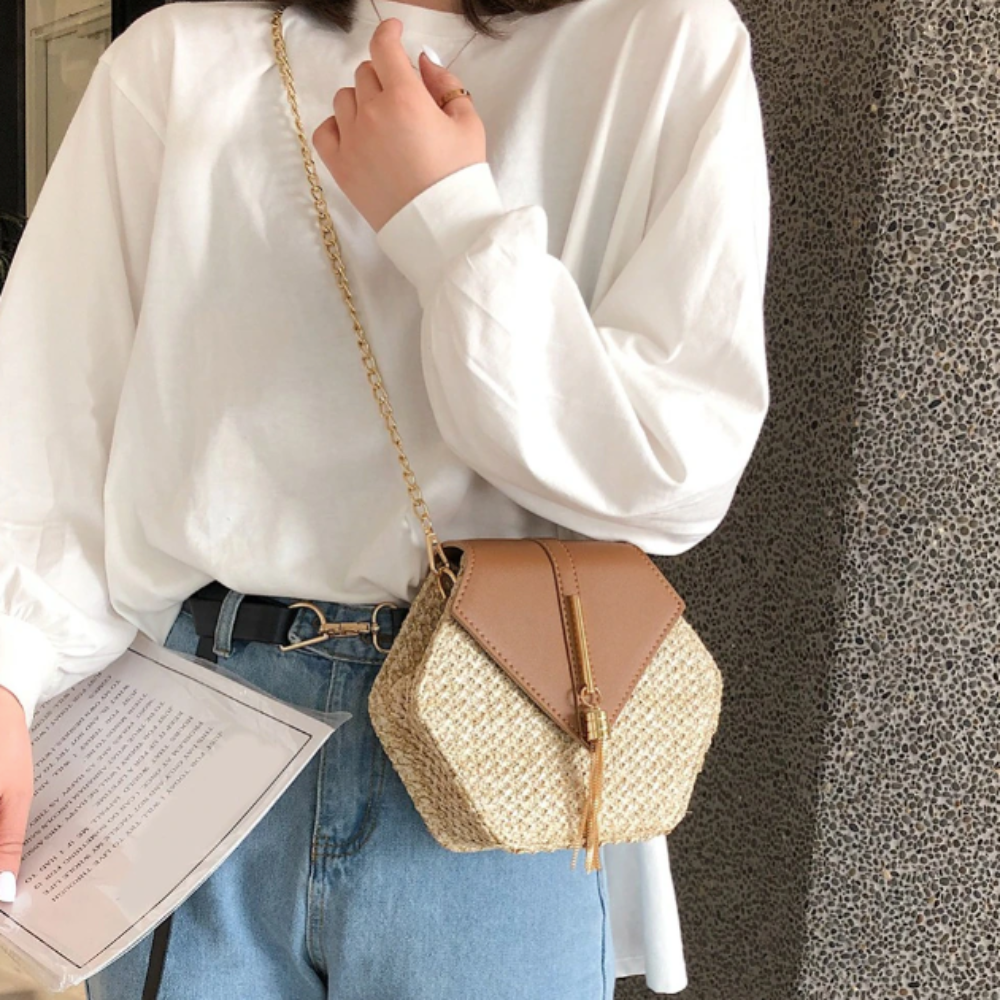 Don't miss out on this stylish and sustainable bag! Shop now and get your Mini Straw Bag with Vegan Leather Cover today.