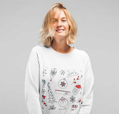 Womens Christmas Theme comfy soft sweatshirt has a loose fit for a comfortable feel. The collar is ribbed knit, so it retains its shape even after washing.