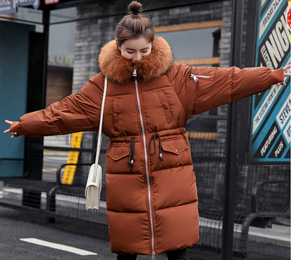 Womens Cinch Waist Puffy Jacket with Furry Hood