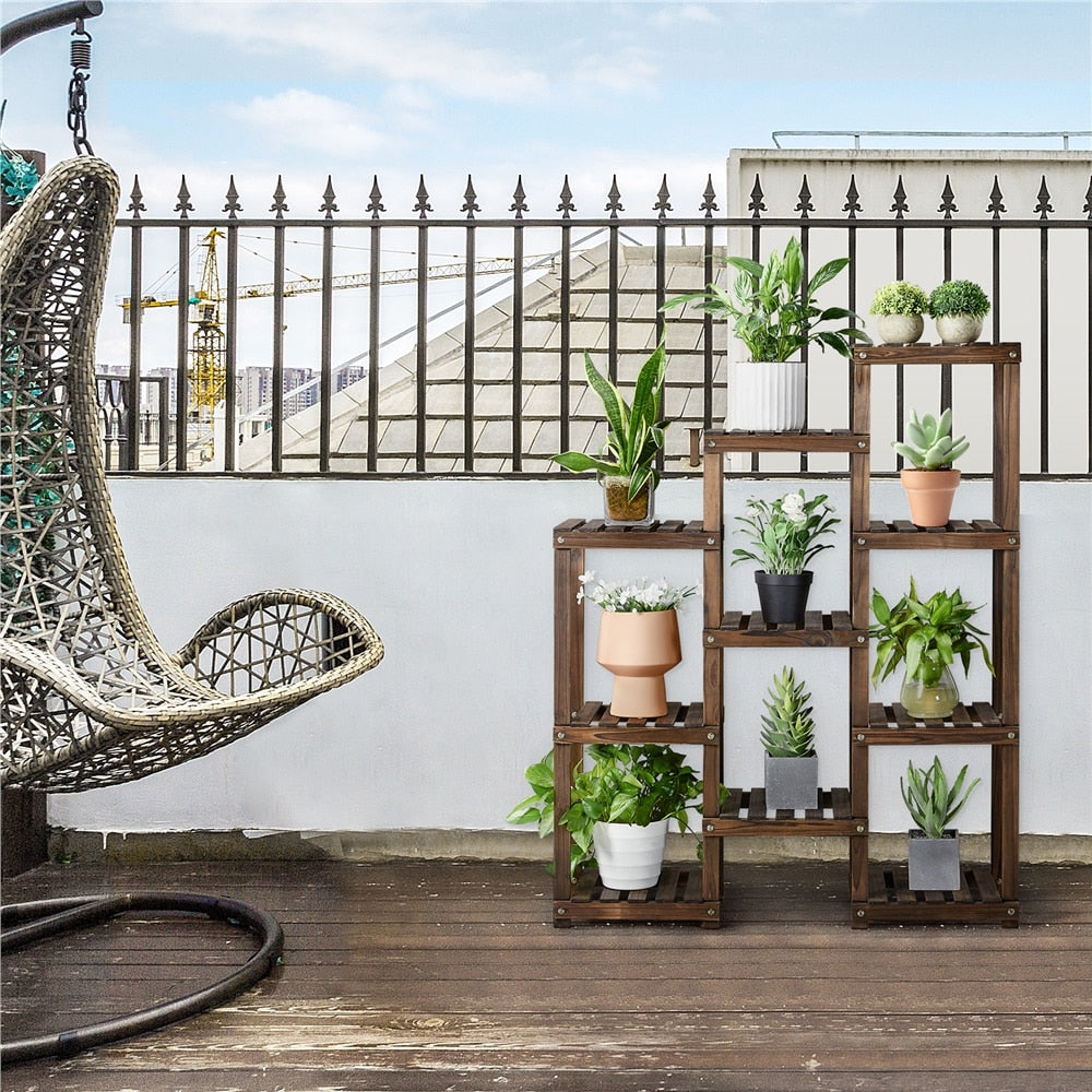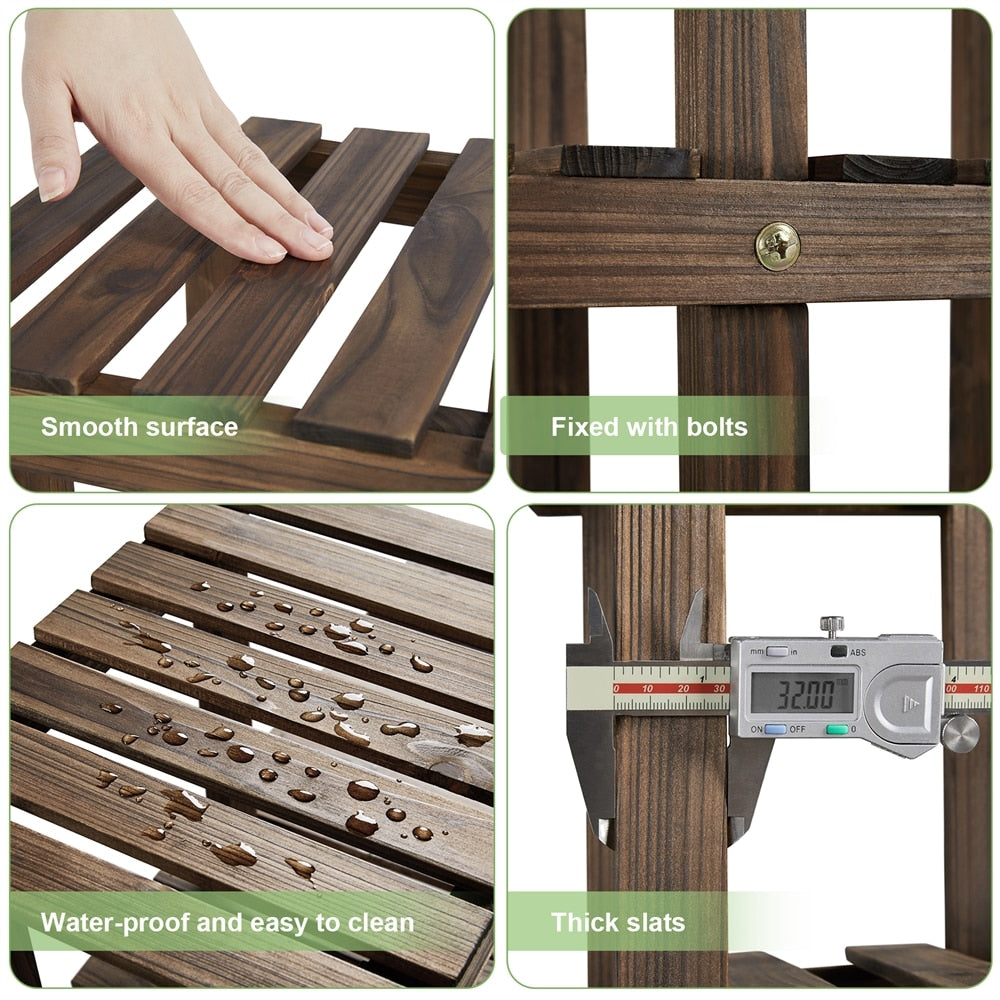The 7-Tier Wooden Plant Stand, a versatile and eye-catching solution to showcase your plant collection. Crafted from high-quality wood, this plant stand offers durability and a touch of natural elegance. With its seven-tier design, it provides ample space to display a variety of plants, creating a stunning botanical arrangement. The sturdy construction ensures stability and support for your plants. Whether placed in your living room, patio, or garden, this stand adds a charming touch to any space. The stand is easy to assemble and the lightweight design allows for convenient movement. Elevate your plant display with the 7-Tier Wooden Plant Stand and enjoy a captivating and organized arrangement.