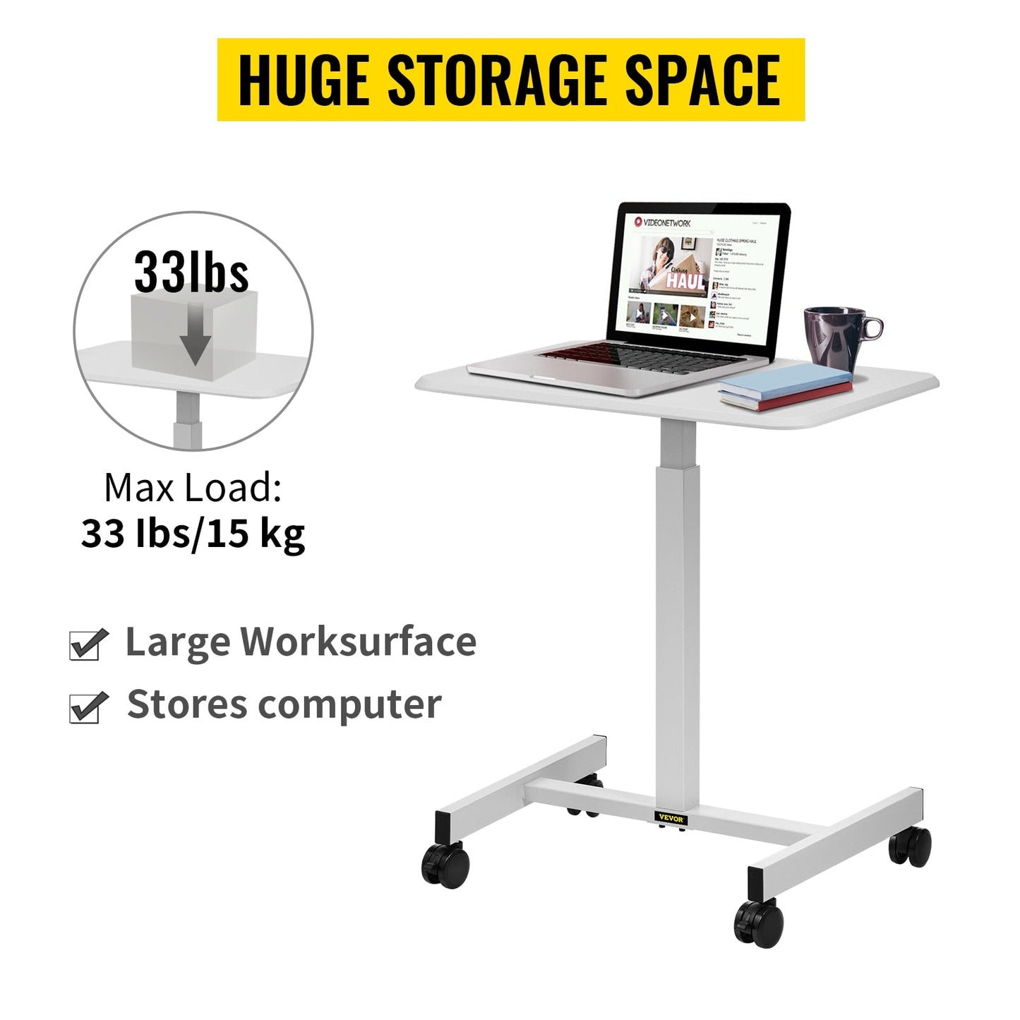 Say goodbye to back pain and neck strain with our Adjustable Laptop Rolling Desk with Lockable Wheels