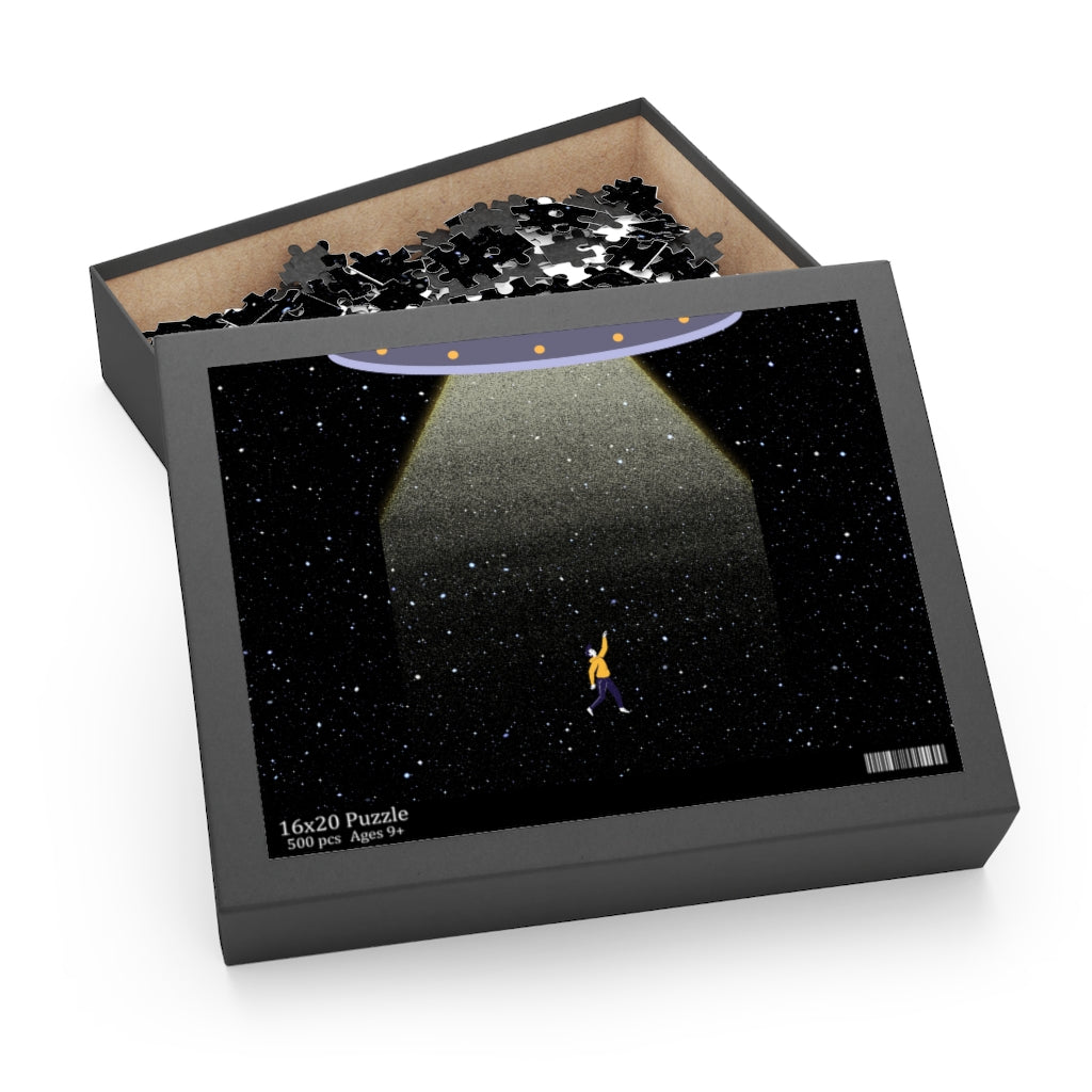Alien Abduction Jigsaw Puzzle 500 pieces, are the perfect downtime activity for friends & family. This jigsaw puzzle is made with high-quality chipboard pieces and ships in a gift-ready box.