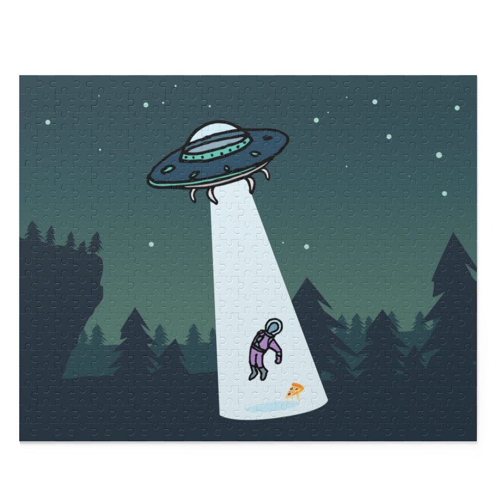 Alien Abduction with Pizza Jigsaw Puzzle 500 pieces, are the perfect downtime activity for friends & family. This jigsaw puzzle is made with high-quality chipboard pieces and ships in a gift-ready.