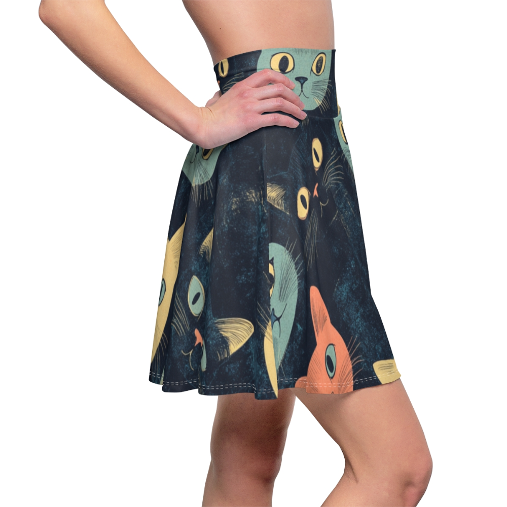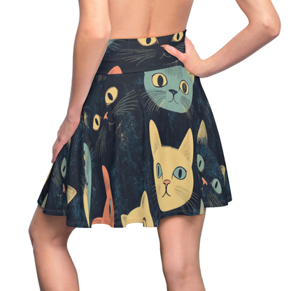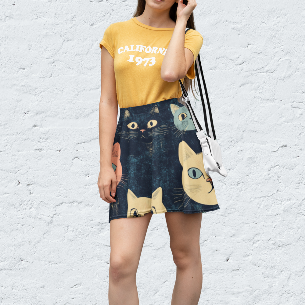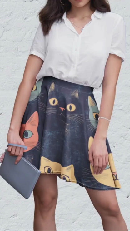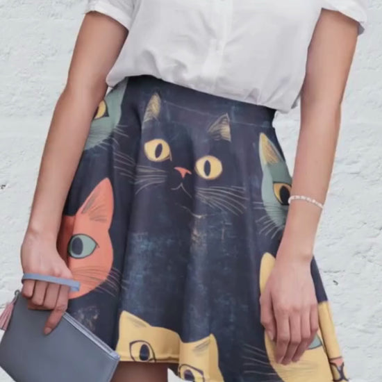 This cat-patterned skater skirt exudes a cute and playful vibe, perfect for cat lovers and those who enjoy a whimsical style. Ideal for casual everyday wear or dressing up for a fun event, this skirt offers comfort and style in one. Great for cat-themed parties, cat lovers, and casual outings.