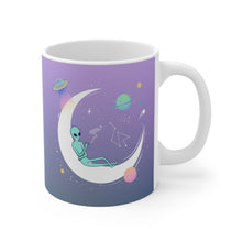 Chilling Alien Purple Mug - the perfect companion for your morning cup of coffee, tea or hot chocolate. Crafted from high-quality, durable ceramic, this classic white mug is designed to withstand daily use and is sure to become your go-to mug for all your favorite hot beverages. With its sleek and stylish design, this mug is perfect for both home and office use.