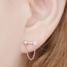 Delicate chain hoop earrings adorned with pearl & sparkles.