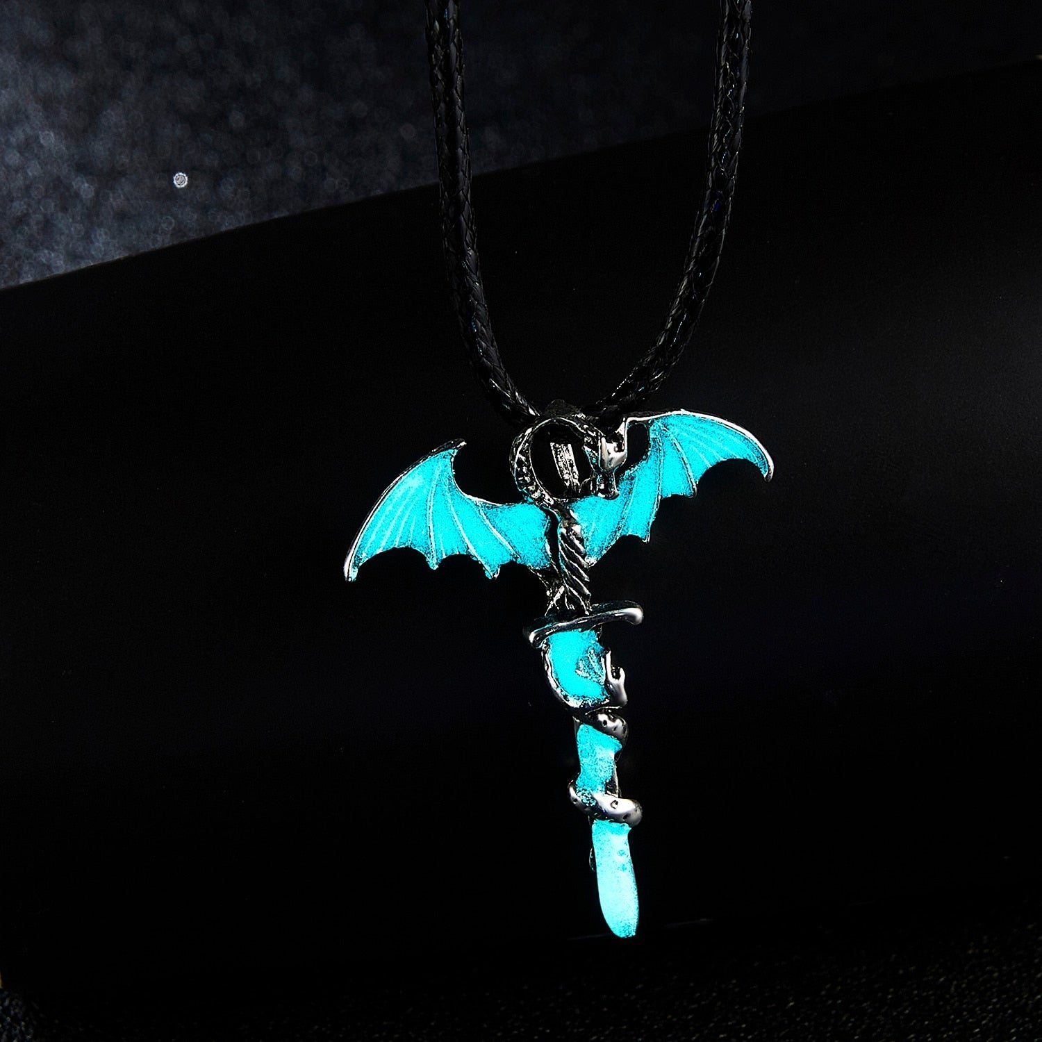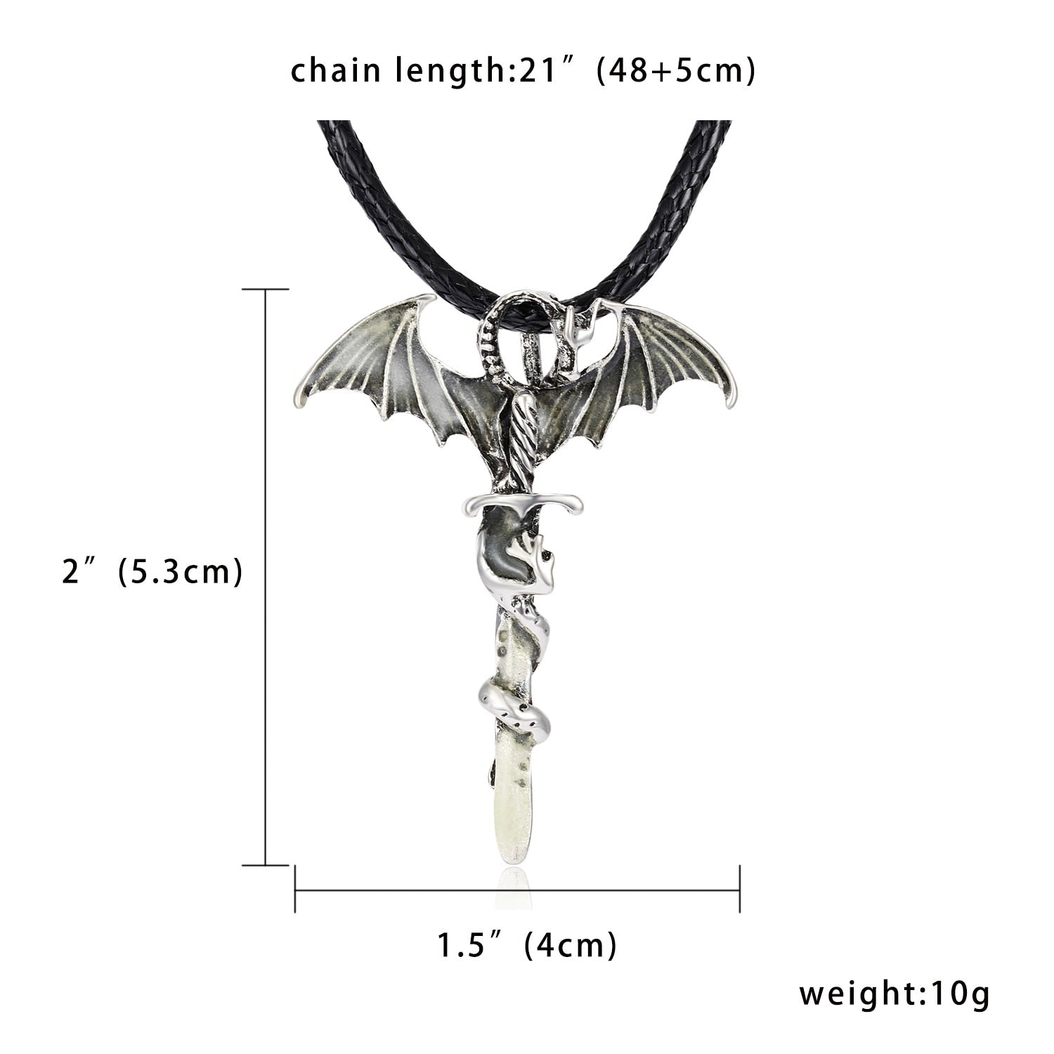 Dragon pendant necklace that glows in the dark, available in 3 colors.