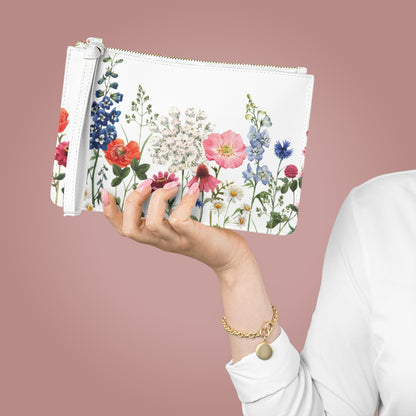 Floral Zipped Clutch Bag - Designed with a loop handle to quickly free your hands, this clutch bag is made for the fashionista on the go. It can hold everyday essentials such as a phone, wallet, and keys. It features a zip fastening and a fully lined internal pocket. It is made of vegan leather in the Saffiano pattern finish.