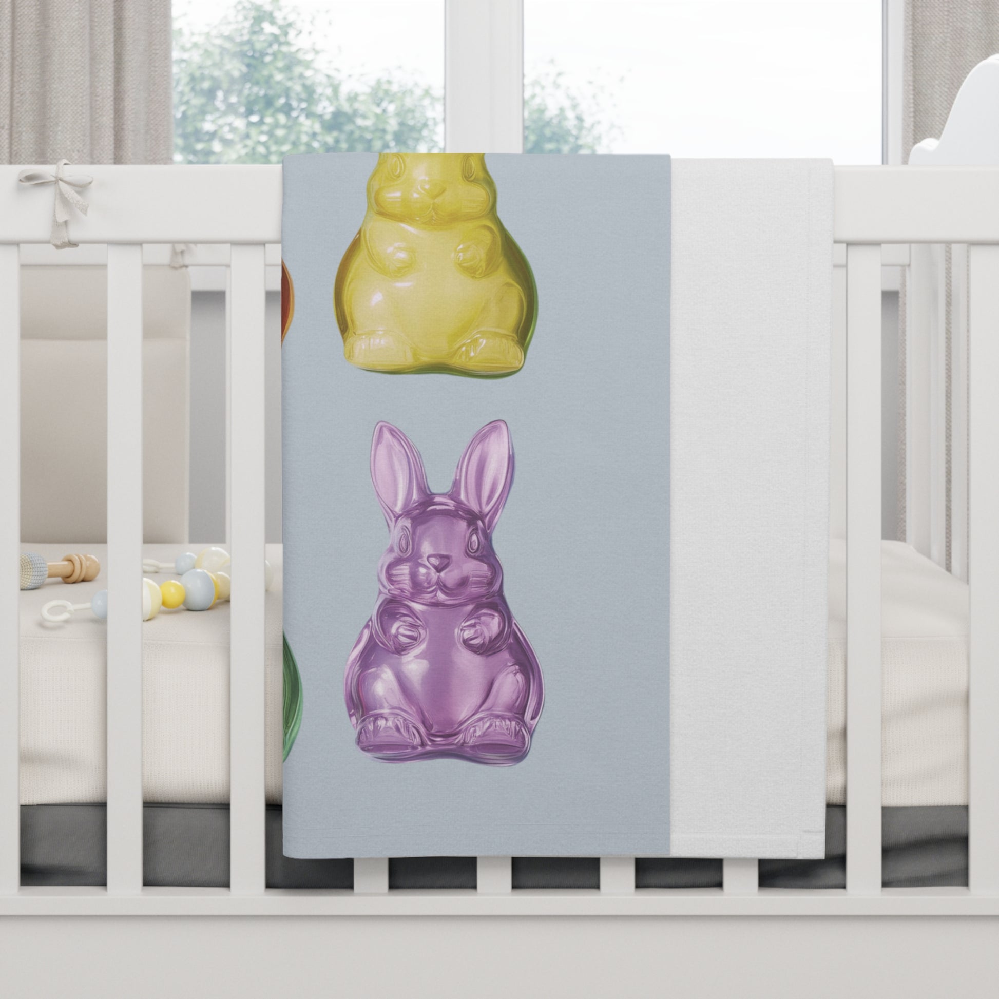 Gummy Rabbits Gray Soft Fleece Baby Blanket