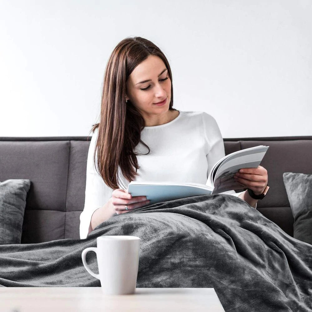 This electric heated throw blanket is made from soft and comfy velvet fabric, with adjustable temperature settings, and features a luxurious feel.