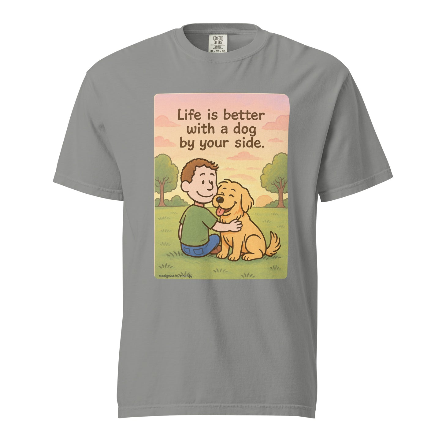 Celebrate the unconditional love of your furry best friend with our 'Life is Better with My Dog' T-shirt — a comfy, casual reminder that life’s sweetest moments are spent together.