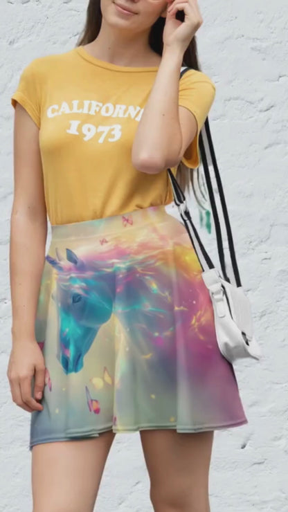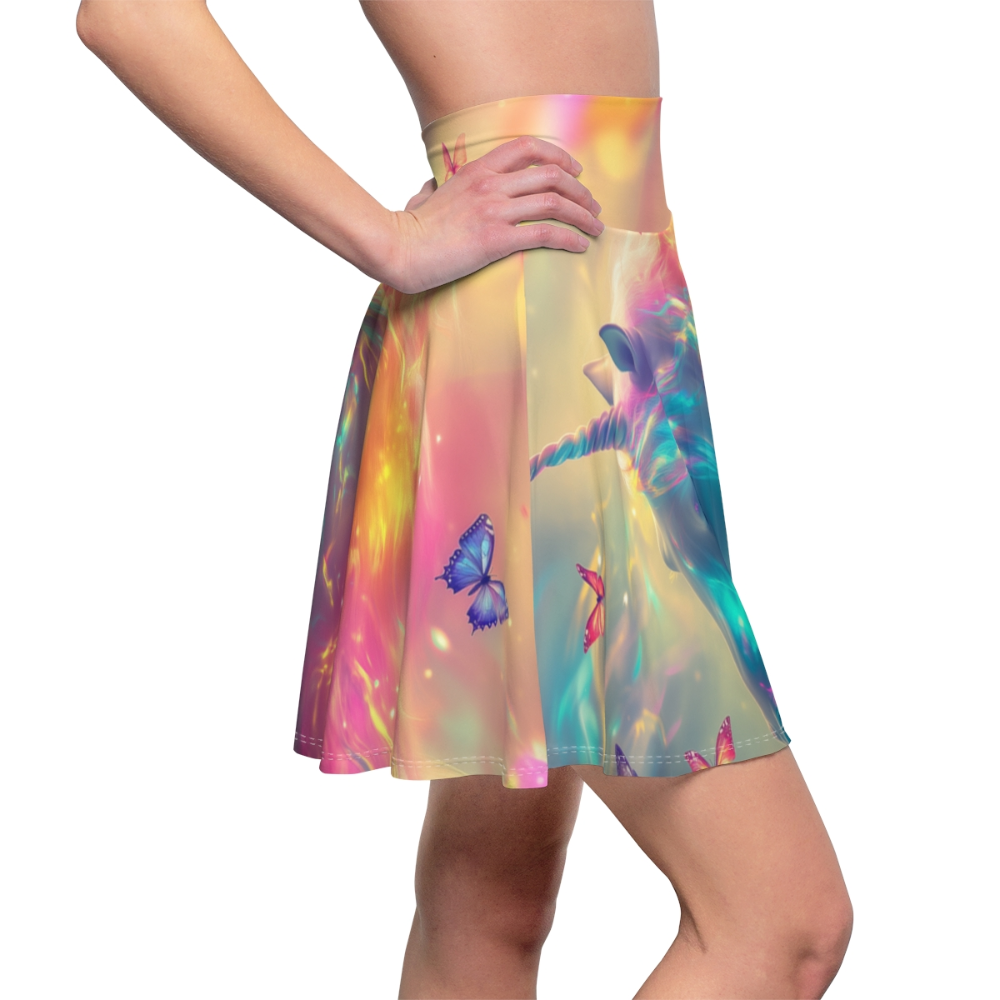 Introducing our vibrant Women's Skater Skirt, designed to bring joy and creativity to your wardrobe. This skirt features a stunning print of mystical unicorns and enchanting butterflies, perfect for those looking to add a touch of whimsy to their everyday style. Made for the free-spirited woman, it flows effortlessly, making it ideal for casual outings, festivals, or a fun day with friends.