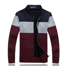 Mens Color Block Zipper Cardigan
