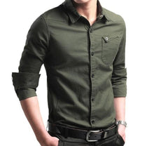Mens casual street style button front cotton shirt comes in Army Green, Pink, Navy and Khaki.
