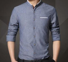 Mens Stand Collar Shirt comes in Gray, Denim Blue or Blue