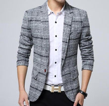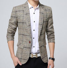Mens Casual Fall and Winter Plaid Blazer comes in XS to L and in Khaki, Gray and Navy.