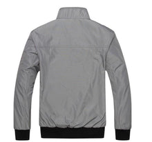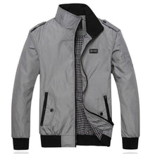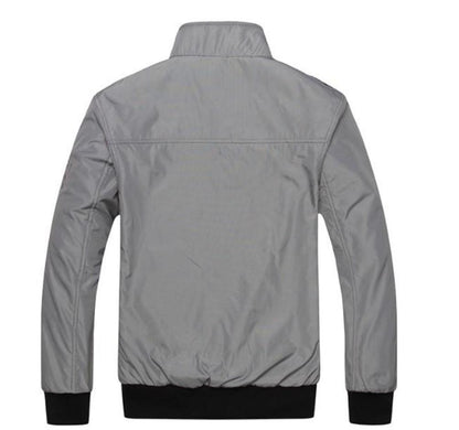 Mens Casual Stand Collar Zipper Jacket comes in Gray or Blue and from size small to large.