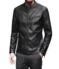 Mens Round Neck Zipped Up Vegan Leather Biker Jacket