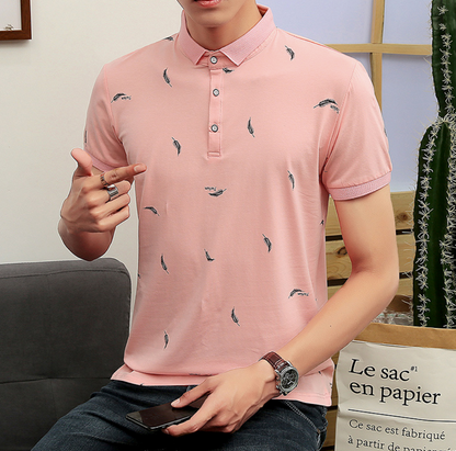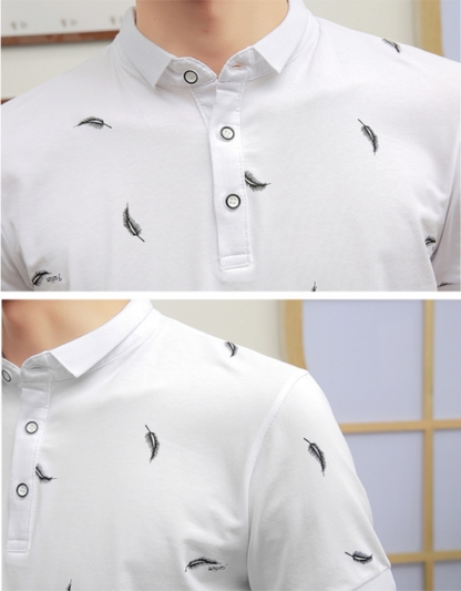 Everyday Causal Polo Shirt with Feather Print