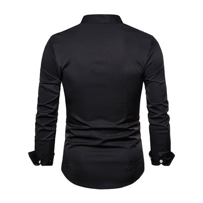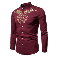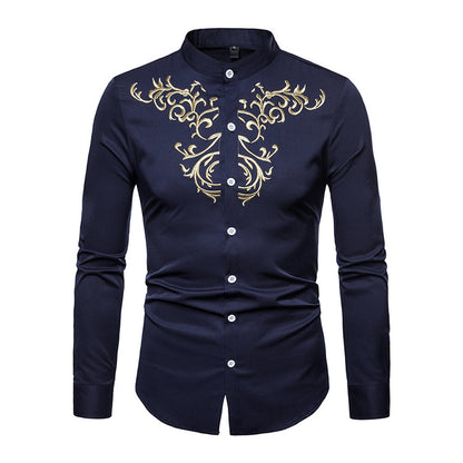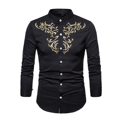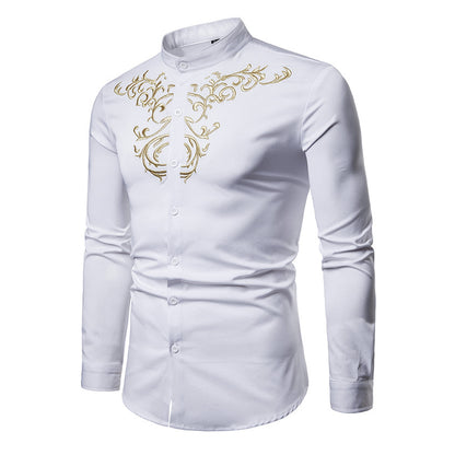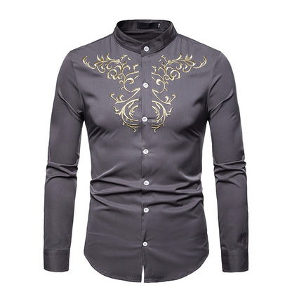 Mens Slim Fit shirt featuring champagne embroidered floral front panel button down shirt.