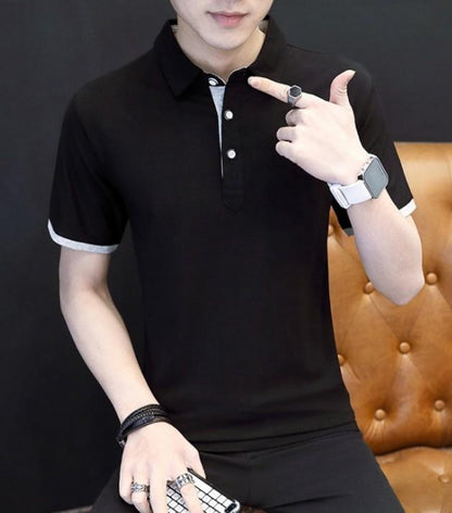 Mens Casual Slim Fit Polo Shirt with Dual Layered Sleeve Design