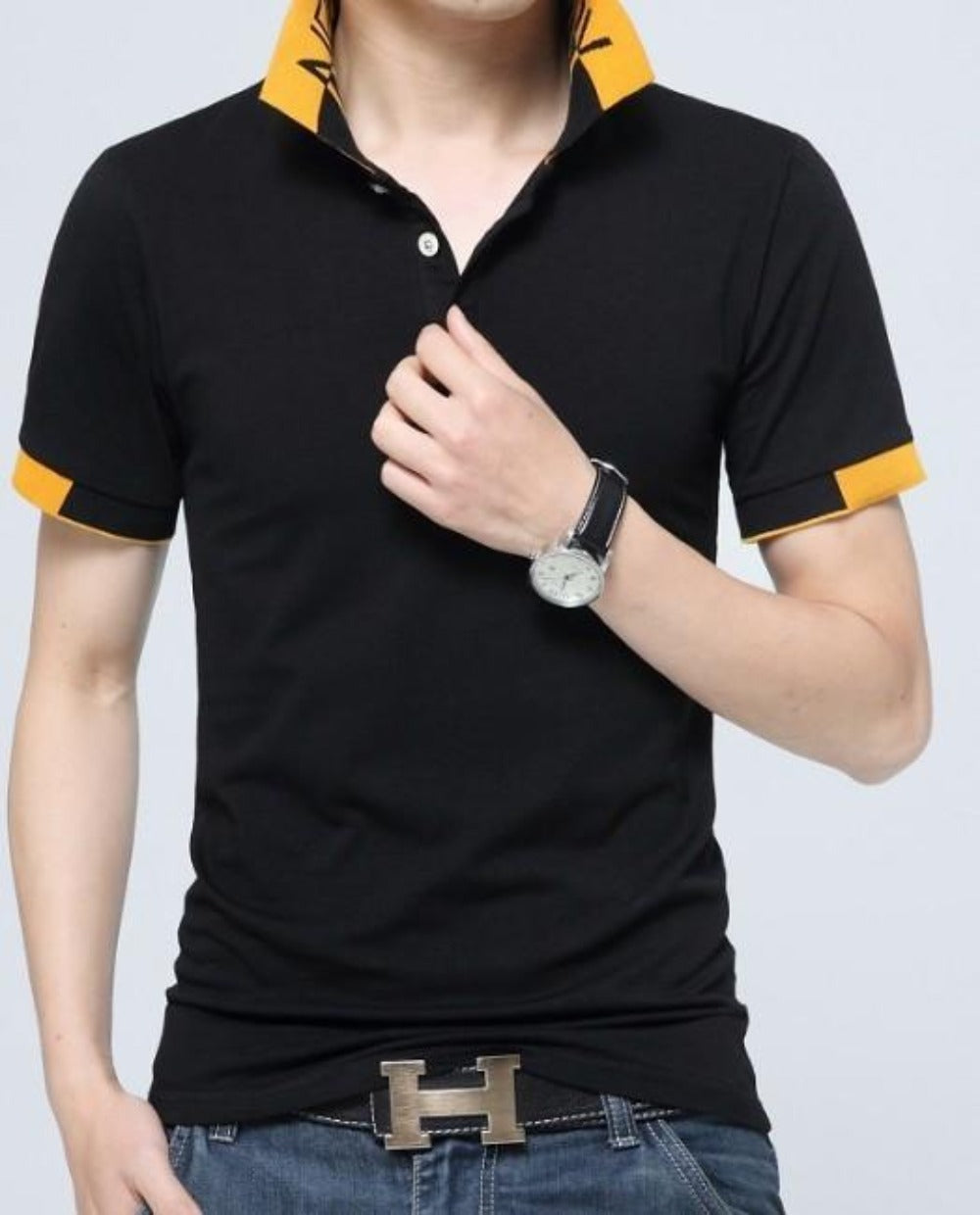 Mens Two Tone Short Sleeve Polo Shirt