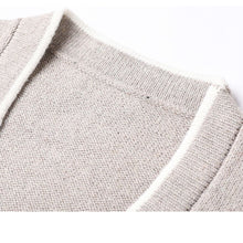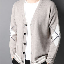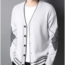 Mens V Neck Cardigan with Criss Cross Elbow Patch