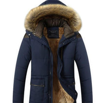 Mens Winter Hooded Coat comes in Beige, Black or Blue and from Small to Large.