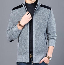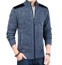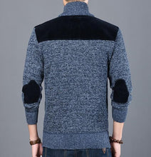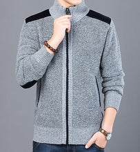 Mens Casual Street Style Zipped Up Cardigan with Elbow Patch comes in Light Gray and Blue.