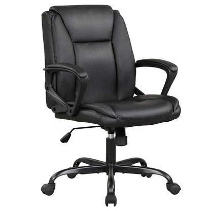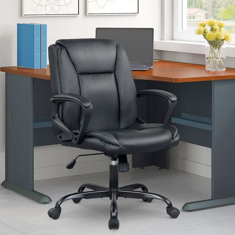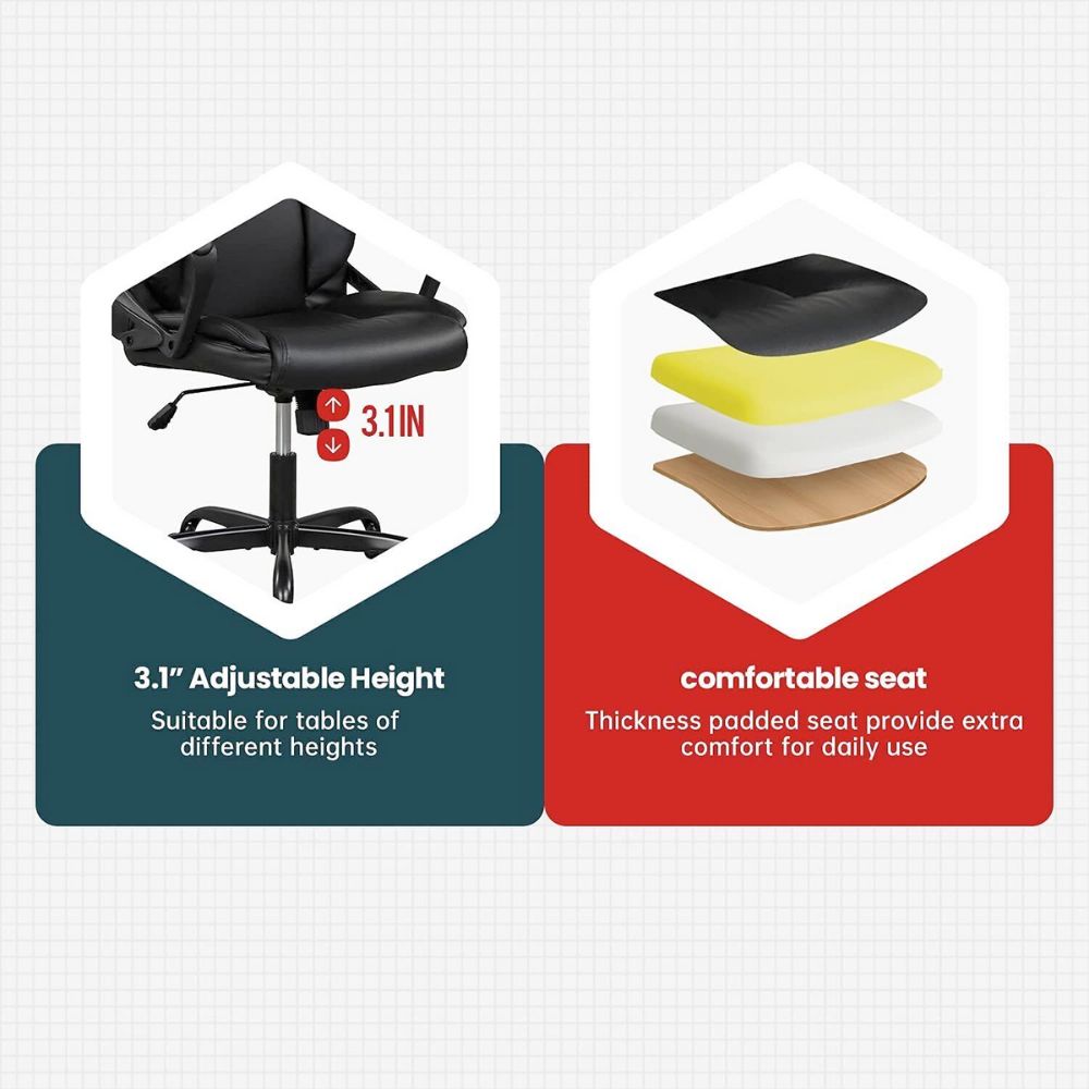 Premium Vegan Leather Office Chair with Ergonomic Back Rest. This super comfy chair is made for everyday use by supporting the back and lumbar area. Featuring padded armrest for extra comfort. Give yourself a break after working long hours at your desk with this ergonomic chair.