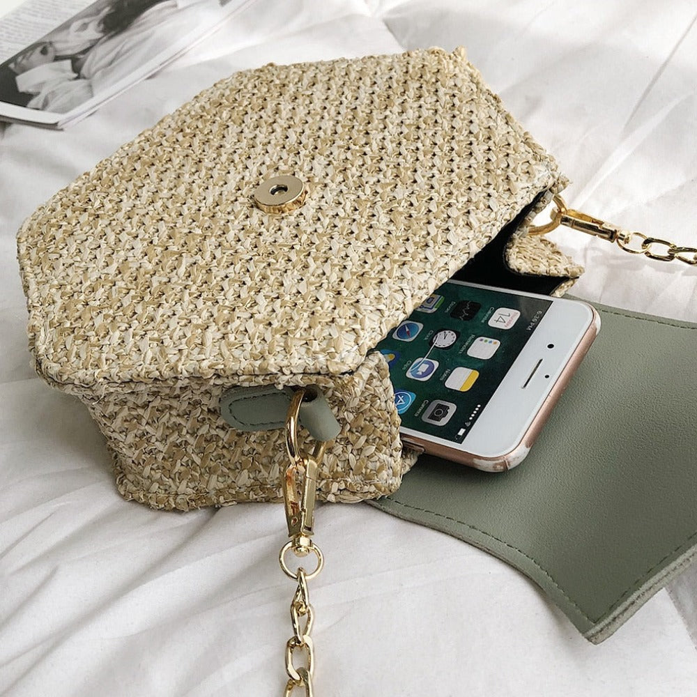 Don't miss out on this stylish and sustainable bag! Shop now and get your Mini Straw Bag with Vegan Leather Cover today.