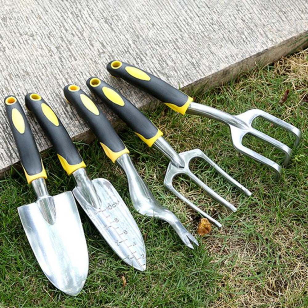 Durable 5 pcs gardening tool set. Made with high quality aluminum and rubber handle.
