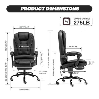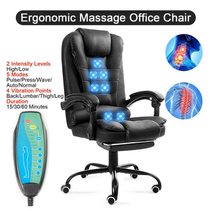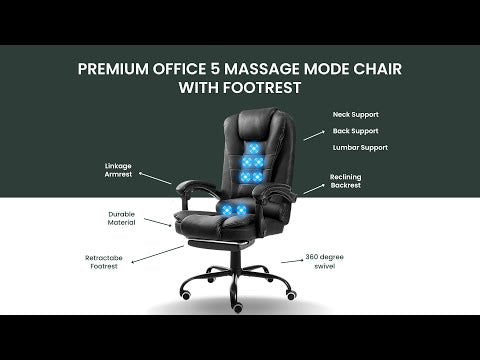 Premium Vegan Leather Office Massage Chair with 7 Massage Points and 5 Massage mode, an upgrade from our top selling massage chair. Working from home or office has never been more relaxing with this massage office chair. This super comfy chair is equipped with a massaging system to help instantly relax your back, plus retractable foot rest for the full body relaxation experience. Give yourself a break after working long hours at your desk, relaxation for the body and mind.
