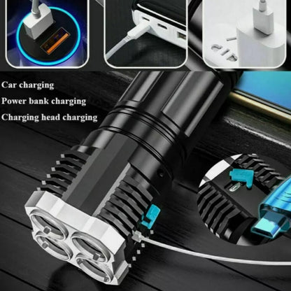 Multifunction Powerful 4 Head LED Waterproof Outdoor Camping Flashlight.