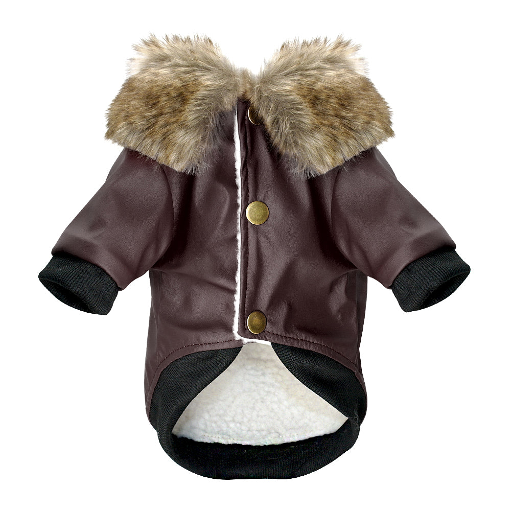 This winter, dress up your dog with this trendy faux leather jacket that comes in Red or Brown.