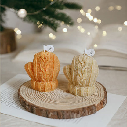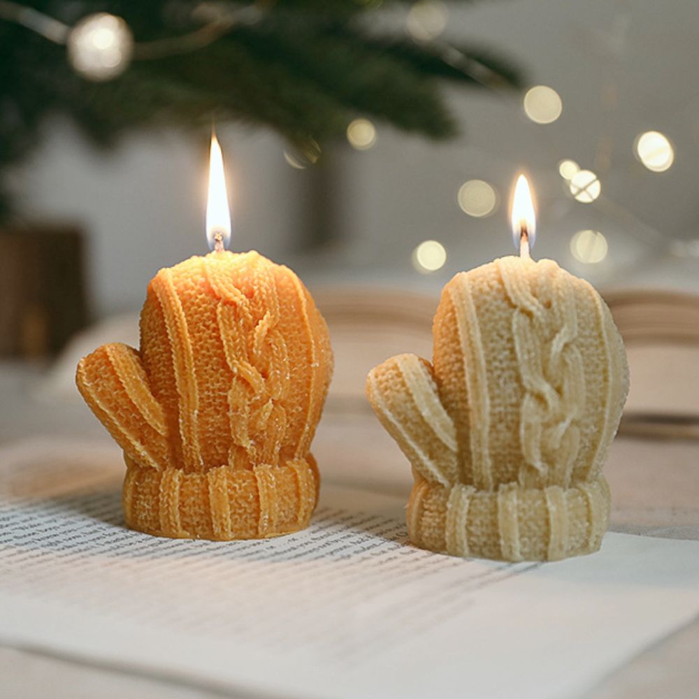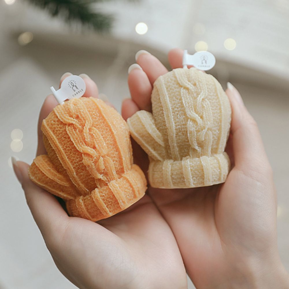 Wool winter gloves candle set comes in 4 pieces. Makes a perfect ornament for your home. Candles are scented.