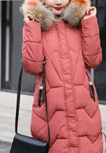 Womens Casual Puffer Coat with Faux Fur Hood in Pink