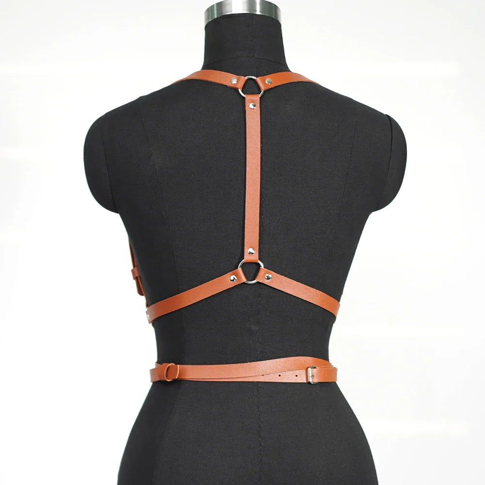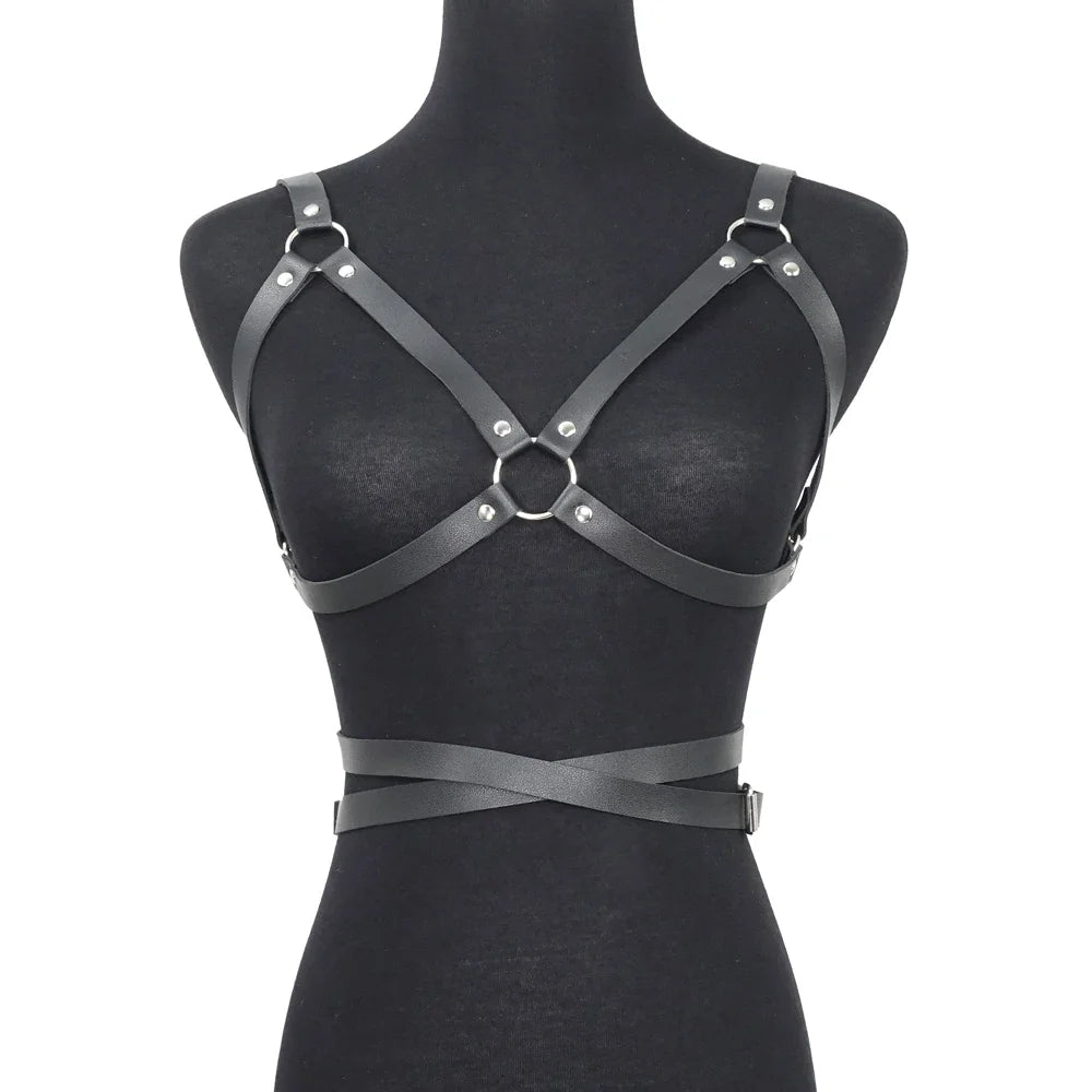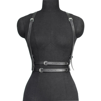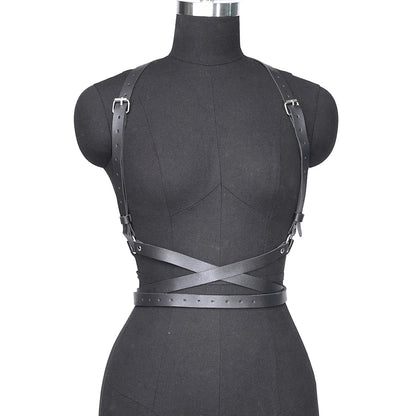 Make a statement in this faux leather corset. Strap extends from shoulder to waist, it creates a flattering, hourglass figure.