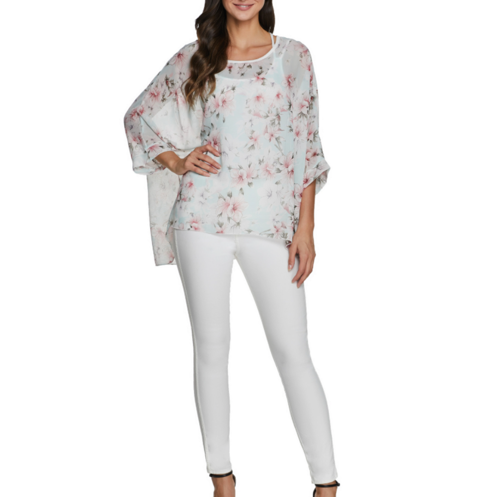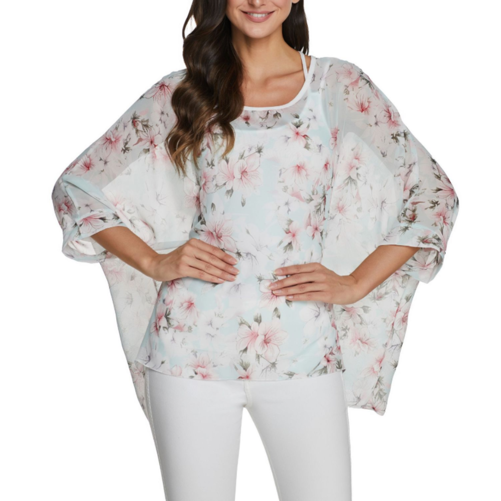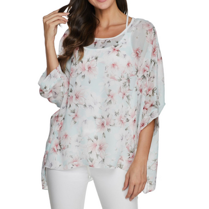 Womens Flowy Chiffon Tunic with Floral Print