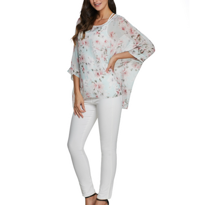 Step into a world of elegance with our Women's Flowy Chiffon Tunic. Crafted from lightweight chiffon, this tunic drapes beautifully, ensuring you stay comfortable while looking effortlessly chic. The delicate floral print adds a touch of femininity, making it the ideal choice for both casual outings and special occasions. Whether you're dressing it up with accessories or keeping it simple, this tunic is versatile enough to suit any occasion.