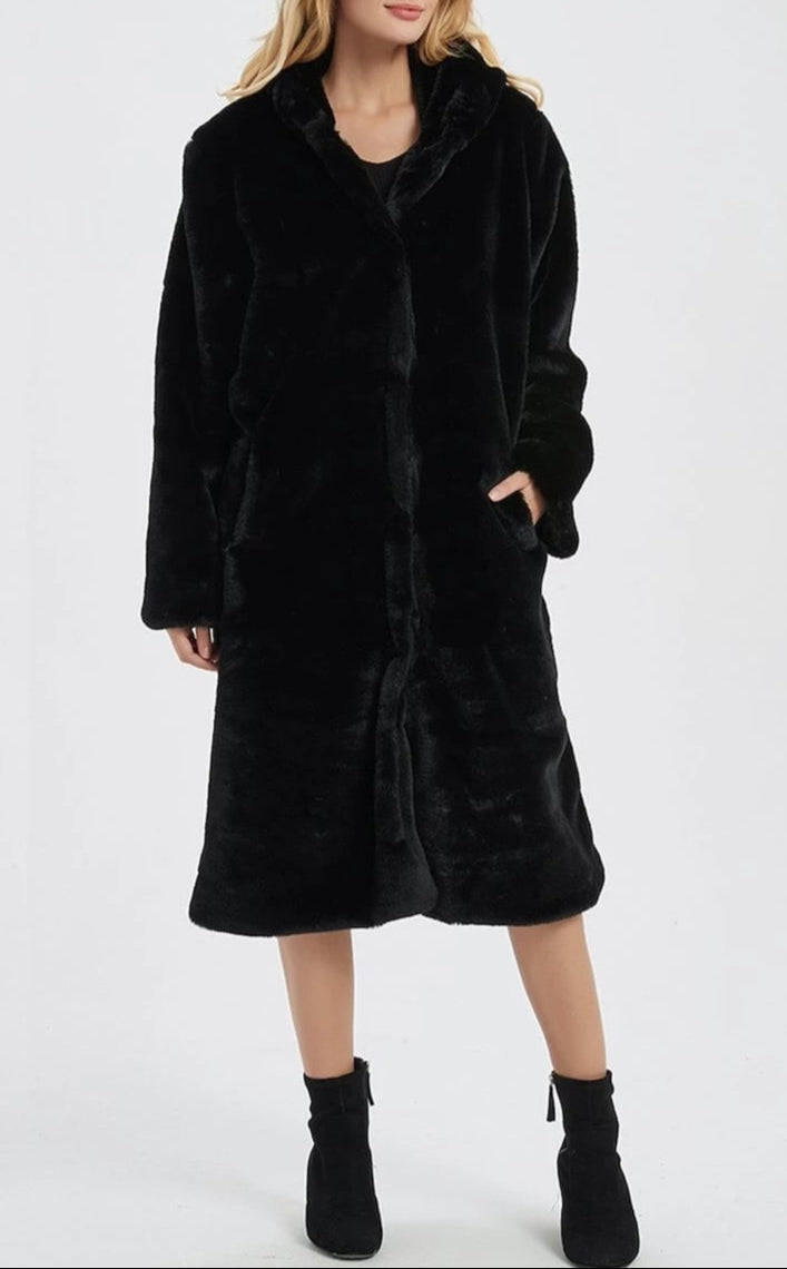 Womens Hooded Faux Fur Coat with Pockets