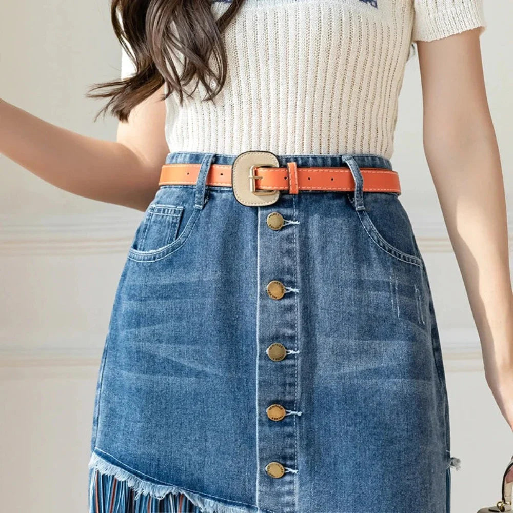 * Classic Denim Fabric: Crafted from comfortable and durable denim fabric, this skirt is made to last.