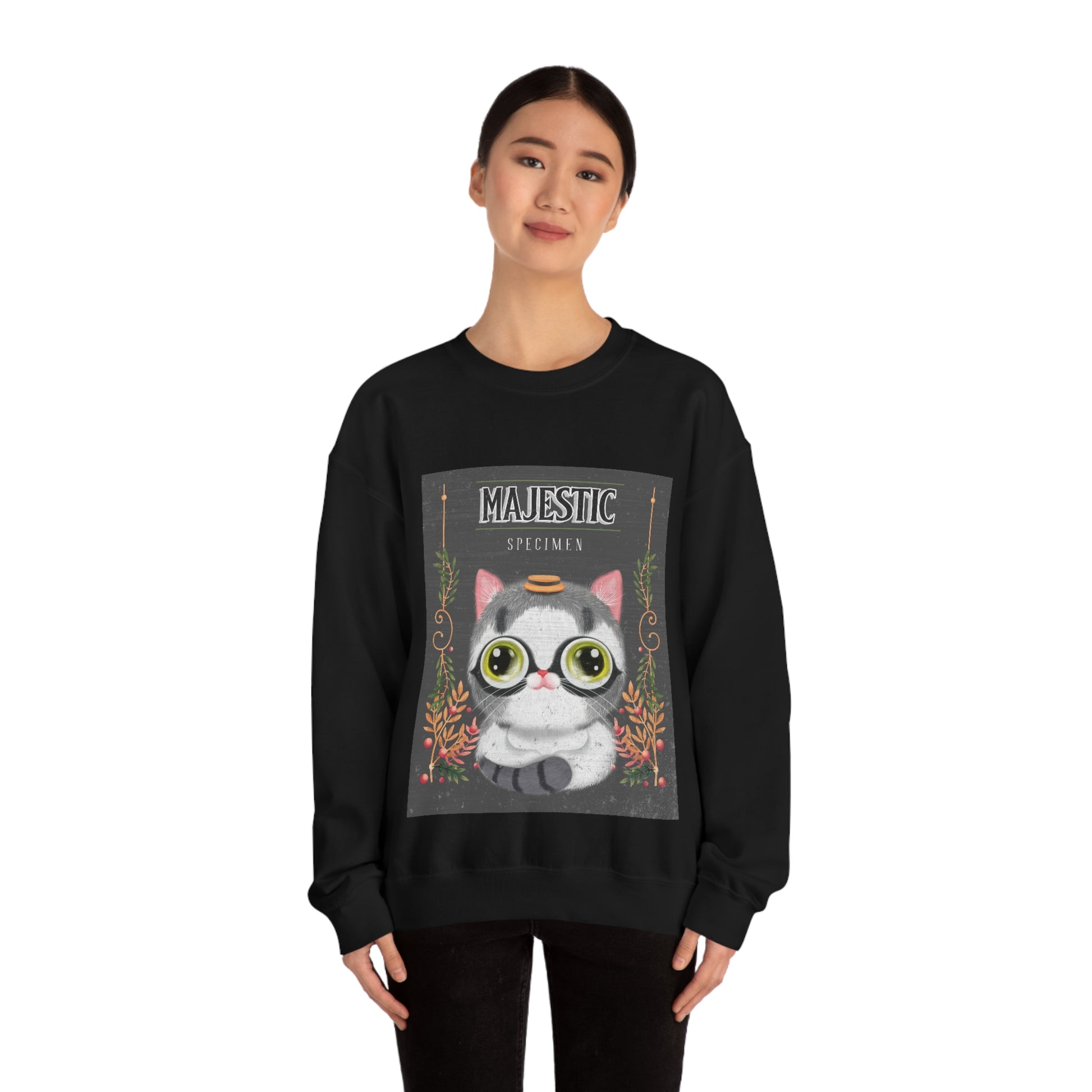 Throw on and go with this soft sweatshirt, featuring a loose relaxed fit for a comfortable feel. This Majestic Cat sweatshirt is sure to add some fun and flair to your wardrobe. Plus, our sweatshirts are made from high-quality materials for extra comfort and durability.